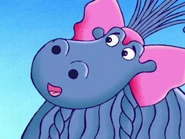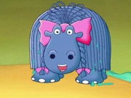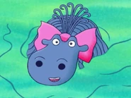 When the Snip Snip Bird gave Henrietta a beautiful look, pink bows are decorated with her hairs completely decorated all over her body. The reason Henrietta asked for this was so that the hippos from the Zambam River do not taunt her in a harsh way. However, when she returned to her home to recap her adventures, the other hippos felt impressed of Henrietta's beautiful appearance.