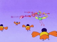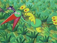 The Snip Snip Bird often lives near the Blue Mountain more often being very helpful to visitors who visit here. During his encounter with Henrietta, the Snip Snip Bird serves as her barber while Henrietta asks him to give him a good look so the hippos at the Zambam River won't make fun of her hair, giving her a beautiful look. Aside from Henrietta, the Snip Snip Bird is also very good at greeting visitors in his home, such as Gary where he kindly interacts with him during his visit to the Blue Mountain.