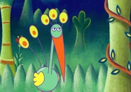 Aside from living near the Blue Mountain, the Snip Snip Bird not only serves as the narrator, but also the commentator in Episode 7 where he comments on the animals competing during the race knowing where Zed and the animals are going while Zed attempts to win the race. However, the other animals won in first place instead of Zed.