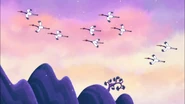 Horace returned to Gertie eating flowers before winter. Bao Bao asked her to eat them before winter. Finally, Cassandra has arrived for her final moments with Bao Bao. Later on, a flock of cranes started leaving during the winter. Cassandra followed the flock of cranes and left the mountains. The animals said "Goodbye" to Cassandra. Cassandra asked the animals that she and her species will return next spring.