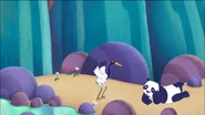 Later, Bao Bao tried to say bid a farewell to Cassandra as soon as possible. Cassandra began asking Bao Bao to play with bamboos, but Bao Bao wants her to leave. Cassandra won't leave at first. Bao Bao is very cranky that Cassandra won't leave. That is because Cassandra can only leave during the winter. Gertie appeared right next to Cassandra and discussed with each other about Bao Bao being wrong.